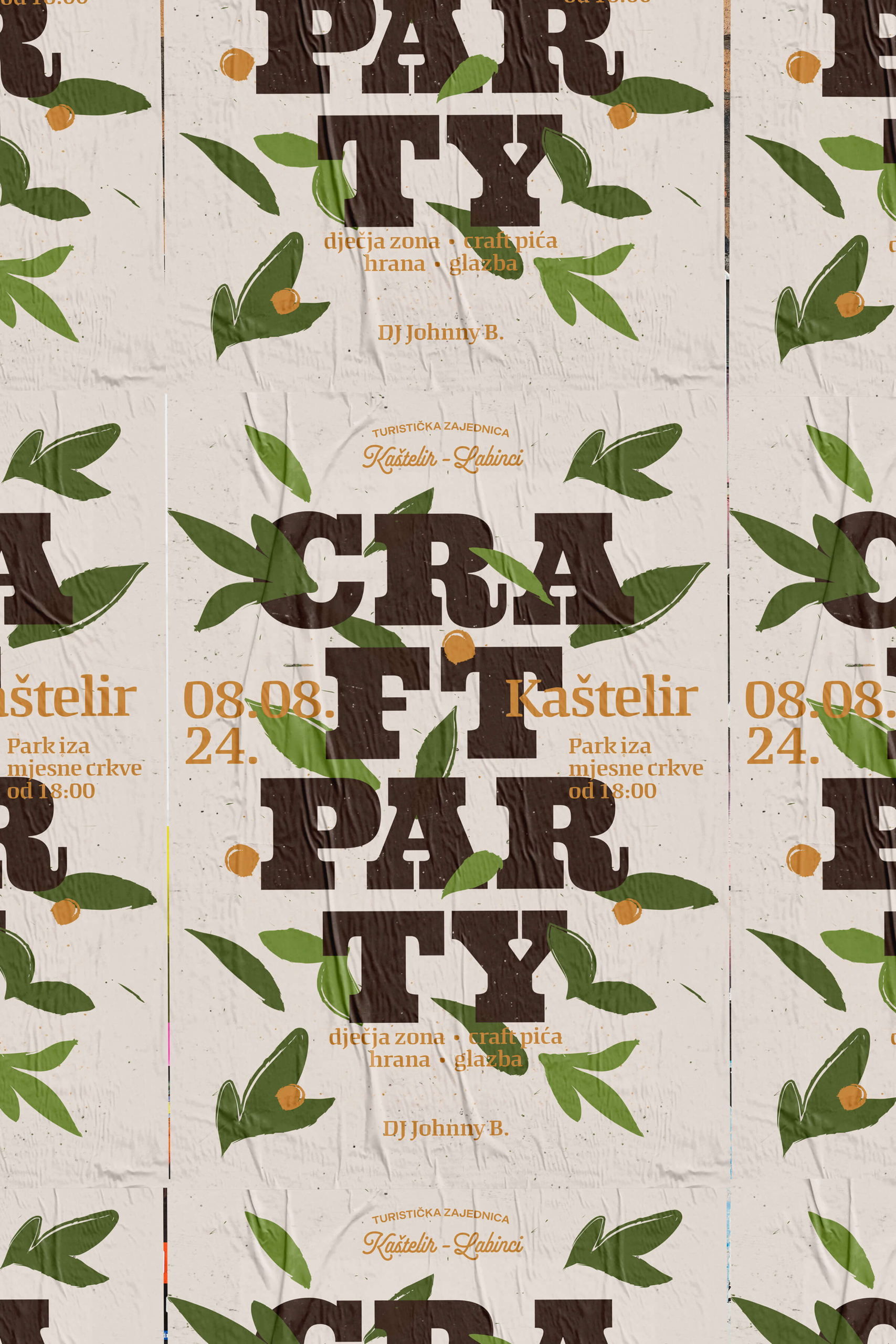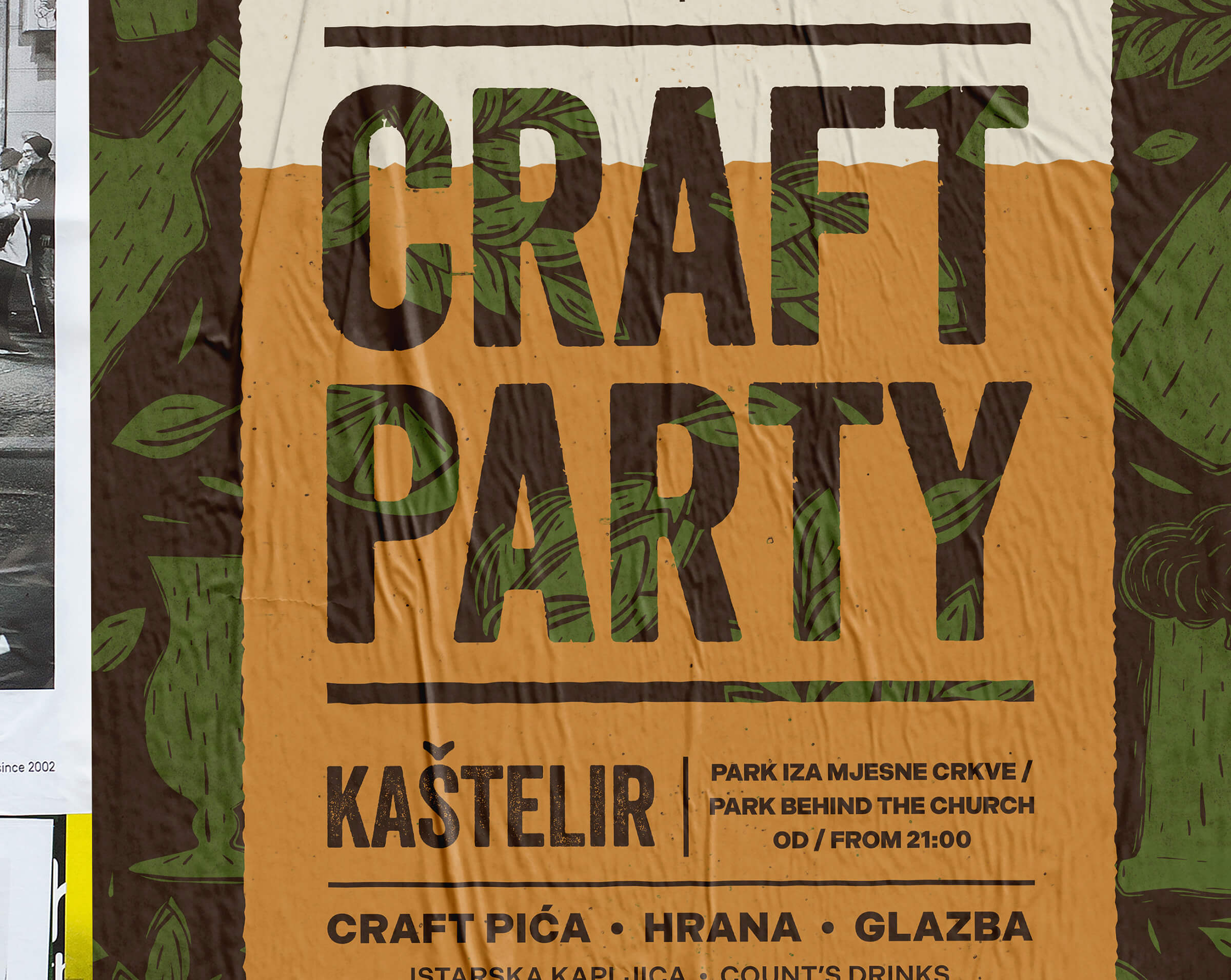 Za ovaj projekt osmislili smo vizualni identitet manifestacije koji oblikom i bojom asocira na pivo – najpopularnije craft piće. U pozadini se provlače elementi koji vizualno dočaravaju “craft” duh – ručni rad, toplinu i domaći karakter.